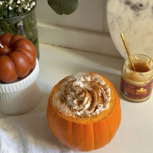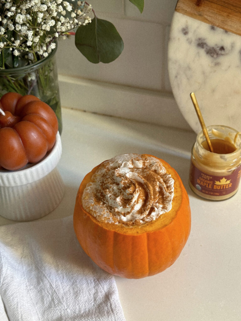 I made this little latte for a cozy autumn treat… and then I couldn’t stop sipping it. Why? Because it’s served in a tiny carved-out pie pumpkin! Cute, festive, and full of flavor—this drink is basically fall in a cup (literally).