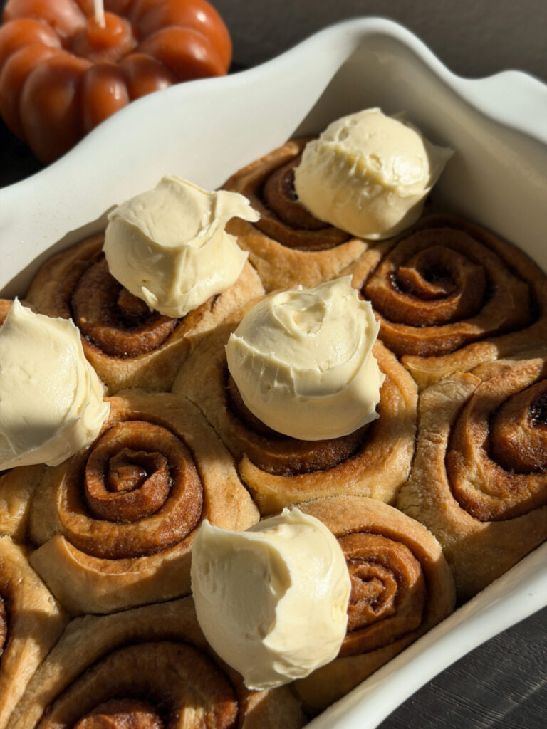 If you’ve never made homemade cinnamon rolls before, this recipe is beginner-friendly and totally worth the wait. The dough is fluffy, the filling is rich and pumpkin-y, and the frosting… well, let’s just say it’s what dreams are made of.