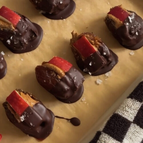 The easiest snack that feels like dessert β€” sweet, chewy, chocolatey, and perfectly salty. These Date Caramel Apple Bites taste like a caramel apple, but without the mess (or refined sugar). They’re my latest obsession for when I want something fun and fall-inspired that still fits my real food vibe.
