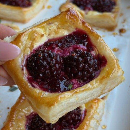 Not that your appetizers need to be “elevated” for the holidays or ever… but these Blackberry Goat Cheese Puff Pastries are one of those recipes that look like you spent way more time on them than you actually did. They’re flaky, lightly sweet, a little tangy, and honestly just a fun way to use up a sheet of puff pastry you probably already have hanging out in your freezer.