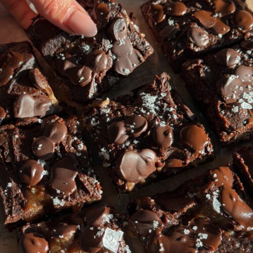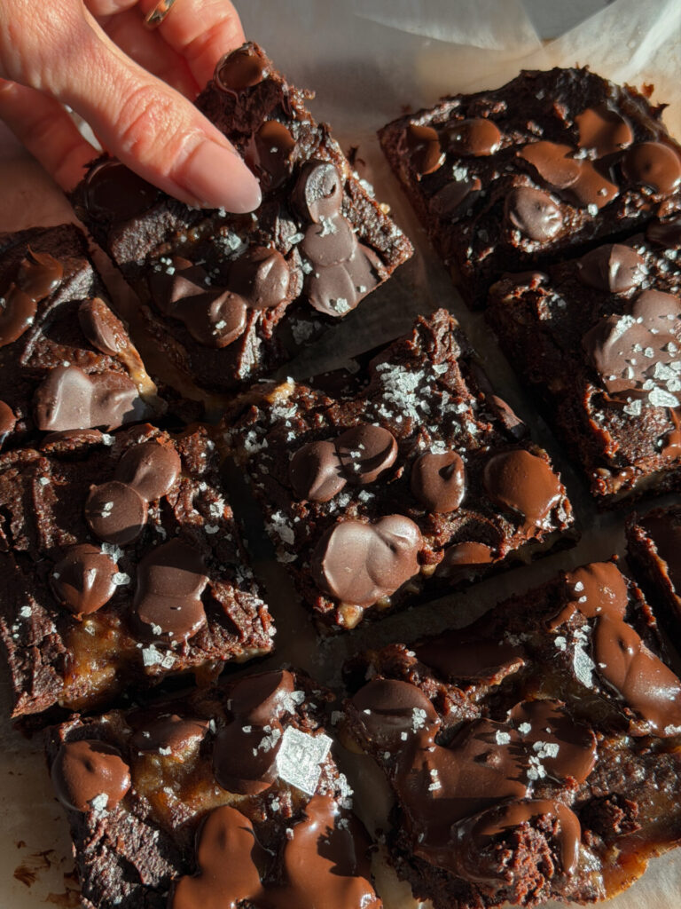 Fudgy Chickpea Salted Caramel Brownies (Gluten-Free + Dairy-Free)