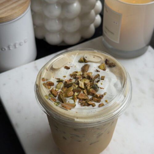 - Top with whipped cream / cold foam and crushed pistachios for an extra special touch.
