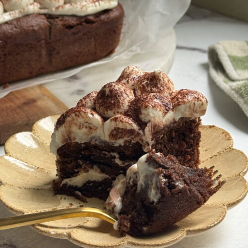 In another bowl, beat the mascarpone cheese, powdered sugar and vanilla until well blended. Fold in the heavy whipping cream until incorporated. Spread a thin layer of the mixture on top of the brownies and then transfer the rest to a piping bag.